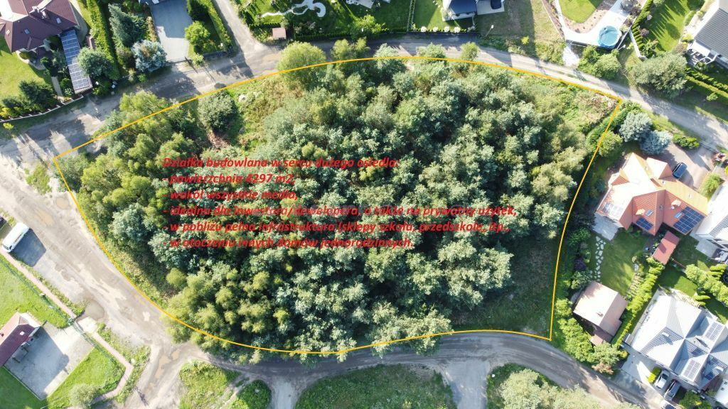 Działka może być doskonałą inwestycja pod budowę kolejnej części tego urokliwego osiedla. Obecnie bowiem stanowi swojego rodzaju enklawę.